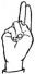 На ћирилици написано ВУКАН ГЛУШИЋ састоји се из 11 слова [?]. Исписано ћириличном једноручном азбуком за глувонеме: